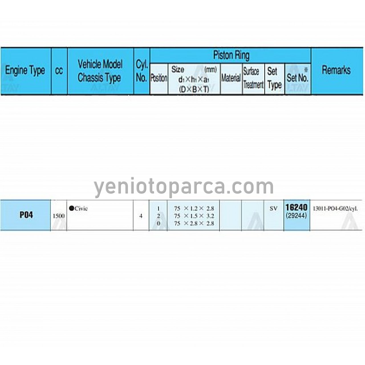 CIVIC SEKMAN TAKIM 1.6L / 92-95 / CRX 90-91 / 75.00mm / D16A9-D16Z5 / (ENJEKSİYONLU) / STD